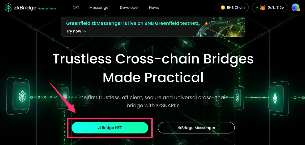 まずやることとして、ネットワークはBNBチェーンを選択し「ZkBridge NFT」をクリック。