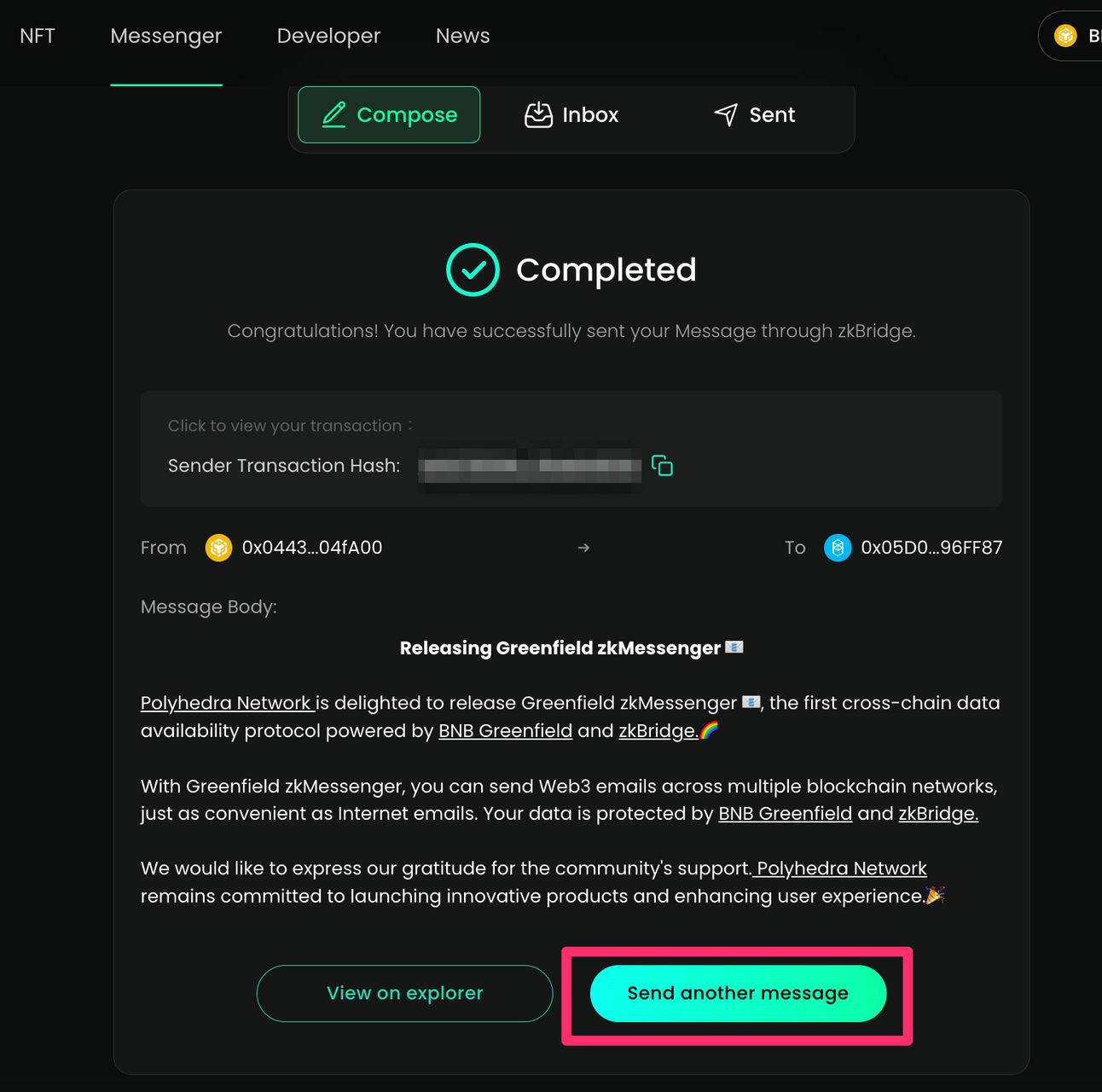 「Messenger」>「BNB Chain」>「Fantom」>「Send a Message」